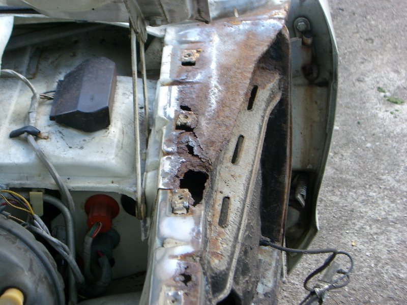 Kommentare sehr willkommen.....wie man oben sieht sind leider auch die Bleche der Motorhaubenaufnahme nicht mehr so frisch, genauso siehts bei den Scheinewerferhaltern aus...hat da jemand 'ne Idee ..ich hab' nirgends reparaturbleche gefunden und ne gesamte Front is a bisserl' teuer..
