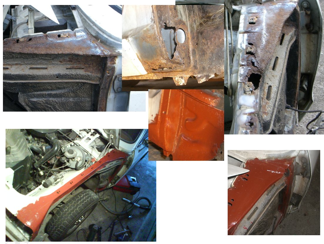 Hintenrum waren beide Radläufe mit Innenkotflüfgeln durch, Endspitzen und Heckblech...nach 1 Jahr isser jetzt beim Lacker (der entgegen den hier gemachten Aussagen zum Glück kein Vermögen verlangt hat) und dann schauen wir mal nach der Mechanik....
