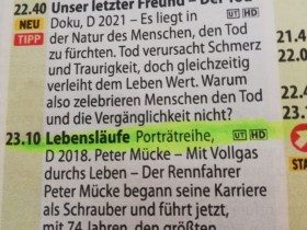 Für die Motorsport begeisterten unter uns; Heute am 18.11 kommt um 23.10 auf dem MDR eine Doku über den Lebenslauf und die Karriere von Peter Mücke.
