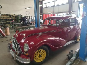So,heute hat die Firmenabteilung für Vorkriegswagen sich Fahrzeugtechnisch mal in die sehr frühe Nachkriegszeit begeben und den 51er BMW ins südliche Berliner Umland verbracht um ihn dort einer Generalsanierung unterziehen zu lassen. Dort ist er in bester Gesellschaft mit MB 770 k,320 und ähnlichen Zeitgenossen.es zeigt sich wieder einmal mehr ,das sich die Firma weiterentwickelt und neue Automobile Zeitepochen erschließt ?