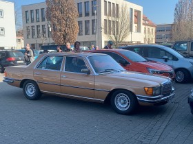 Vornedran ein 123, vorgeblich laut aufgebabbtem Schriftzug nen 260er SE (aber das gab's doch beim 123 gar nicht, oder irre ich?), das Heckblech schliff fast am Straßenbelag und die Scheinwerfer leuchteten gen Himmel.