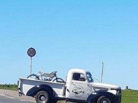 Der ist ja auch noch nicht so alt, wie es scheint. Auf der Insel gabs mal solche Retro-Transporter in den 80ern/90ern, ich glaub, auf Transit-Basis. Jedenfalls mit Ford-Motor.