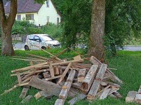 Scheiterhaufen + Elefantenrollschuh = anzünden?