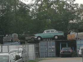 heute im Lindauer Umland, aber in AT vor einer Obst-Veredelungs-Einrichtung: