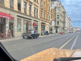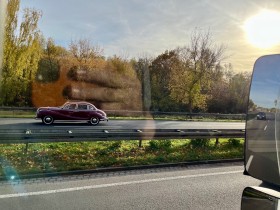 Dunkelbeiger Morgan, älteres Modell im Verkehrsfluss, leider keine Möglichkeit zum knipsen.