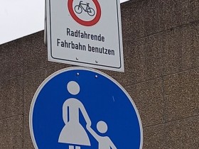 Wotsefak ist eine radfahrende Fahrbahn? Und muss ich als ZufußgehendEr die auch benutzen?