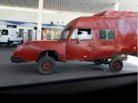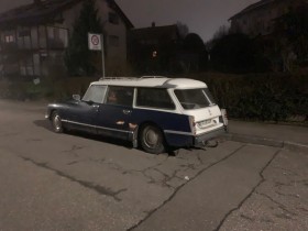 E-Klasse (Vorgänger vom aktuellen Modell) als Kadaverkombi, aber dort wo normalerweise der Benzstern im Grill ist war ein Brabuslogo zu sehen.