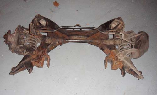 Stammt aus nem Taunus 2 2,3l V6, Bremssattel is noch einer dran, den anderen hatte ich zerlegt, liegt sicher noch irgendwo in ner Kiste. Vielleicht braucht die Achse einer für Achsschenkeln, Federn oder was weiß ich. Lenkgetriebe ist auch noch dran.