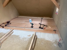 Im Jahr drauf Dachbodenboden gedämmt. Dampfsperre auf den Boden ausgebreitet und an die Dampfsperre vom Dach angebunden. Insgesamt 12cm sehr feste Steinwollmattenlagen in zwei Lagen versetzt gelegt, OSB obenauf. Dachboden als solcher wieder Nutzbar, aber nicht mehr angenehm warm im Winter. Dafür aber weiter unten....