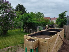 Zwischenplatte hab ich heute reingestellt, da wir es gar nicht geschafft hätten, so viel Erde zu holen.🙈 Die hintere Hälfte ist jetzt erstmal "Kompost".