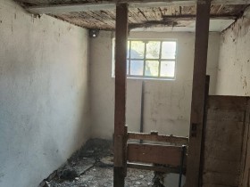 Der alte Hühnerstall wird bisschen schick gemacht. Die Decke kam eh schon halb runter. Erstmal Lager, später vielleicht wieder Hühner. Durchgang nach draußen und Knochenbrecher sind noch da.