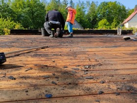 Mit Feuerlöscher, sehr vorbildlich. Ich steh ja nicht auf pappdächer, die sind so schnell wieder undicht, aber alle Alternativen sind immer gleich viel teurer.