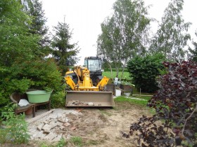 Gleich noch eine häßliche und unnütze Terrasse weggemacht, da das Gerät ja nun mal eh da war