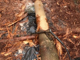 Diesmal mit nem Hochdruckreiniger der die Dinger mit Rotorduese und 350 bar bis aufs Kambium geschaelt hat. Zieheisen war gestern. Spaten auch.