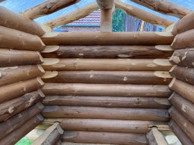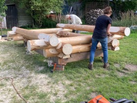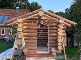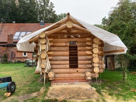 geil, das hätte ich gern als Gartenhütte, aber die Stämme sind net grad billig