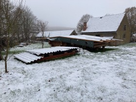 Alte Ziegel fliegen hier noch rum. Die sollen da wieder drauf.