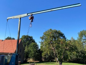 Na jedenfalls war ab Brusthoehe Schluss mit Staemmchen stapeln. Da musste jetzt n Helferlein her. Kumpel gefragt, ab er mir seinen leien kann und was ich da so hinblaettern muss. Kiste Bier meint er. Hahahaaah. Ja, ihr hoert Bier! Geritzt der Deal. Und da isser.
