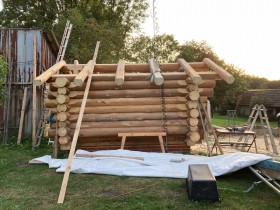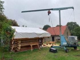 Dieses Jahr ging es dann weiter. Recht spaet erst wegen anderer Projekte und ich nur allein am Start war. Das Staemme jonglieren wird mit zunehmender Hoehe des Bauwerkes auch nicht einfacher.
