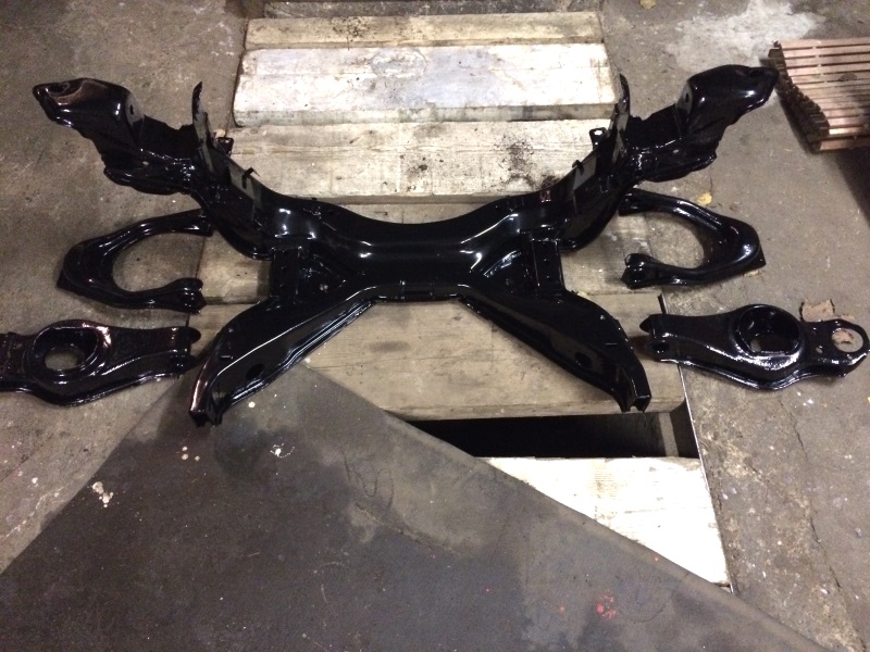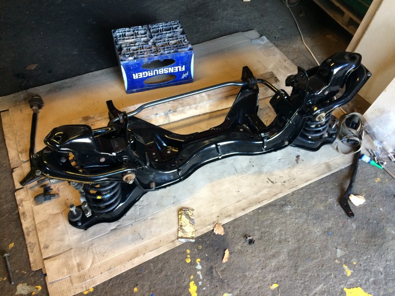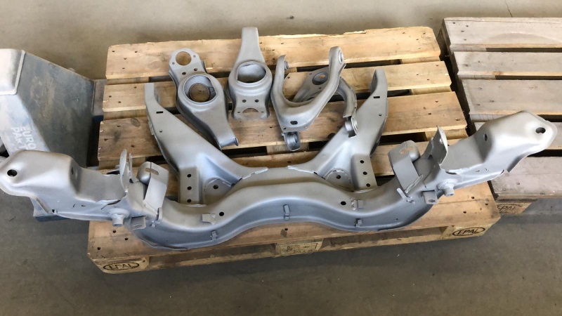 Es geht schleppend voran, aber wieder mal ein Update. Die Achse war zum Sandstrahlen und Pulvern, also zerlegt, Gummis raus, genietete Kugelköpfe von den Querlenkern getrennt...