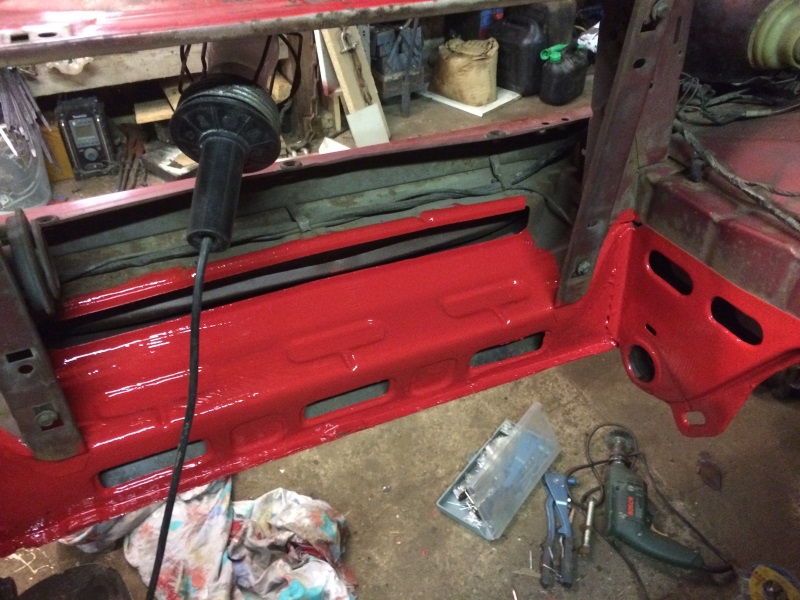 Gestern kam dann noch Farbe in den Motorraum, mit Seidenmatt-Klarlack. Sieht ordentlich aus, aber nicht übertrieben.
