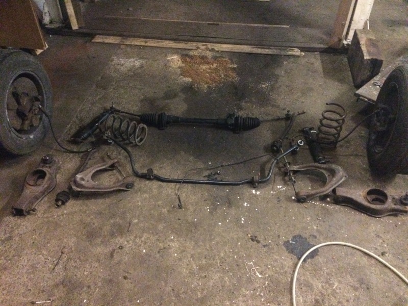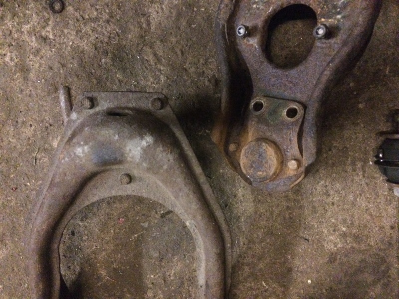 Im Rahmen des Motorwechsels mache ich auch die Achse frisch, d.h. Pulvern, neue Gummibuchsen... Traggelenke und Kugelgelenke in den Querlenkern sind genietet, d.h. wahrscheinlich noch die ersten bzw. original, fühlen sich aber noch gut an. Zum Strahlen müssen die aber eh ab...