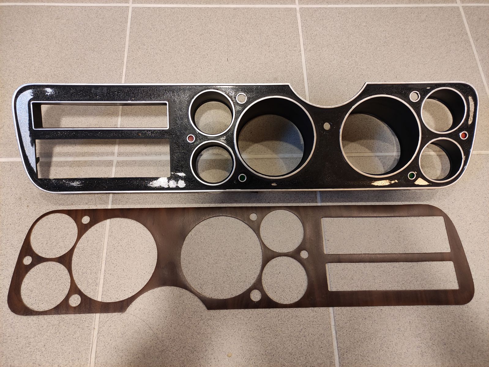 Die Trägerplatte ist ein ca 1mm dicke Platte auf der original das Holzimitat drauf ist. Die Platte mit dem excenter Schleifer geschliffen damit eine schöne blasenfrei Fläche ist und dann die Dekor Folie aufgeklebt und anschließend mit dem Cutter die Löcher und Ränder gemacht. Fertig.