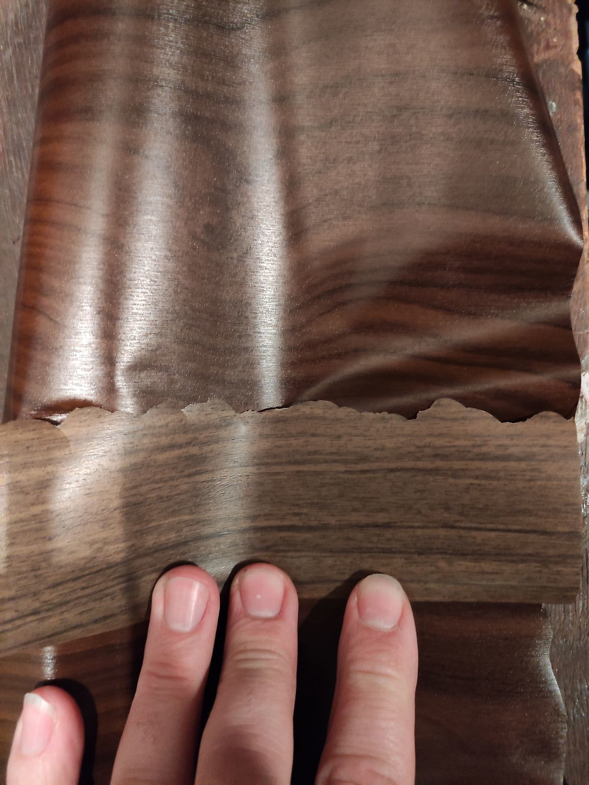 So eine Furnierfolie kann man ja sogar fertig kaufen. Das Problem ist das passgenaue Ausschneiden der Ausschnitte. Ist von Hand kaum hinzukriegen...jedenfalls nicht mit meiner Grobmotorik und begrenzten Geduld.