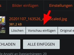 Die Bilder aus euren Alben könnt ihr dann in beliebig vielen Beiträgen im Editor über das Icon mit dem kleinen Fotoapparat ganz rechts einbinden.