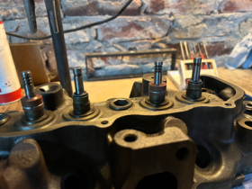 Die Köpfe auf meinem Bild sind beim Liebl auf Bleifrei umgerüstet worden. Da die Führungen der Auslassventile schon spiel hatten, hat er Ventile mit dickerem Schaft verbaut, deswegen sehen die anders aus. Bei den Einlassventilen hat nachschneiden der Sitze gereicht.
