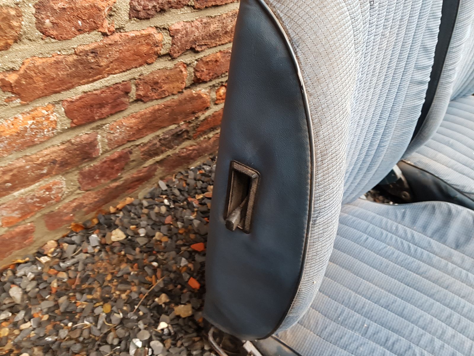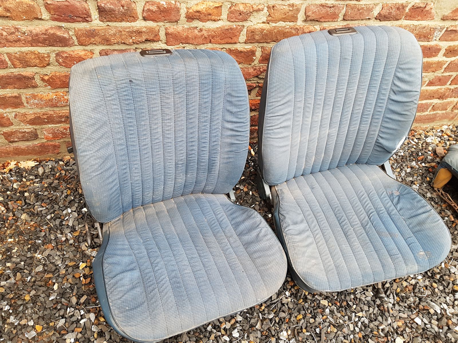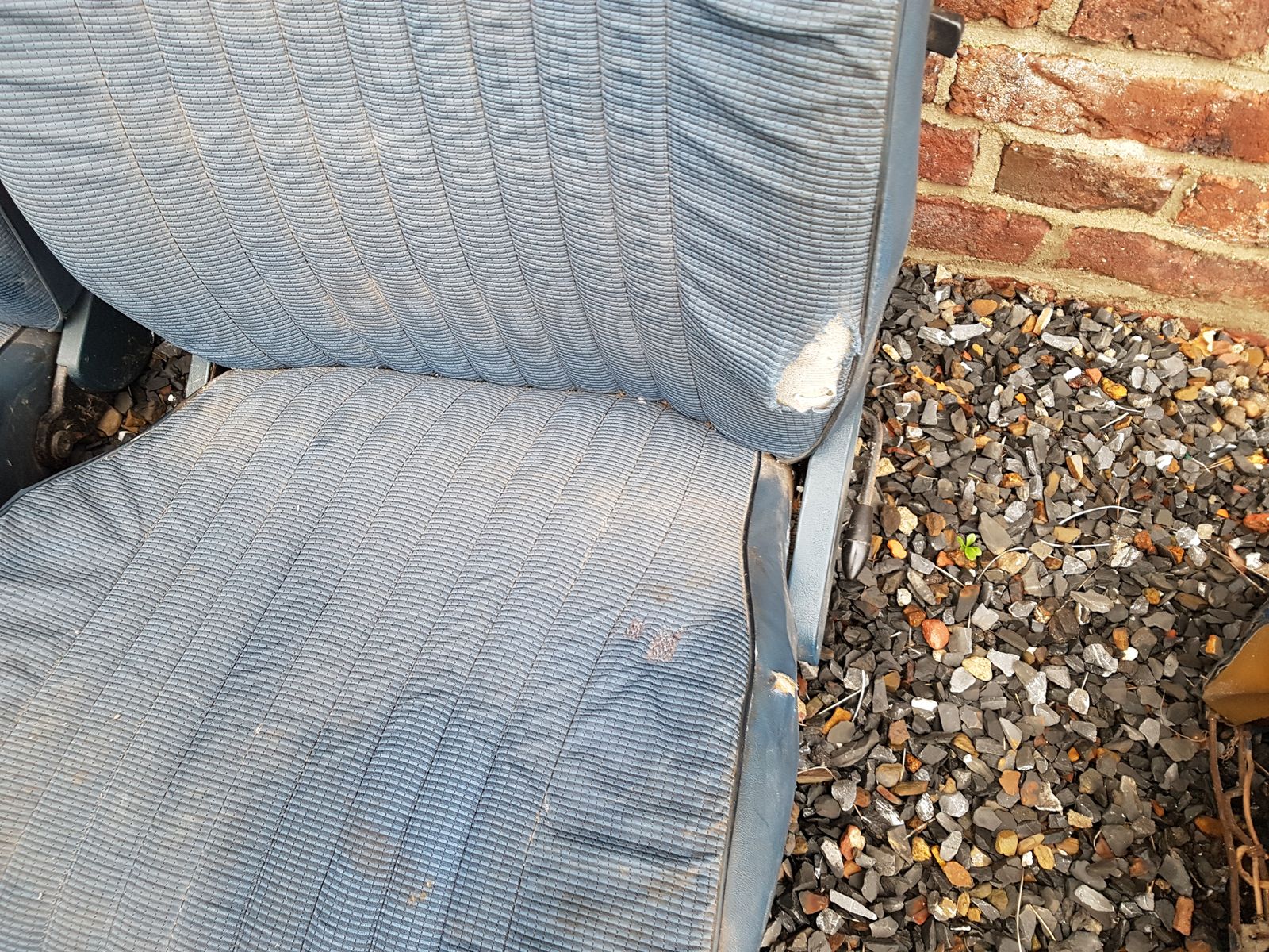 Fahrersitz Seitenwange eingerissen und Sitzfläche geflickt, Beifahrersitz okay.