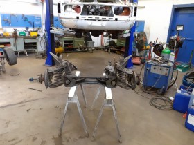 Geht hier, weil TÜV kein Thema ist. Brauchst Du eine Abnahme könnte der Prüfer über geschweisstes am Fahrwerk möglicherweise nicht lachen.