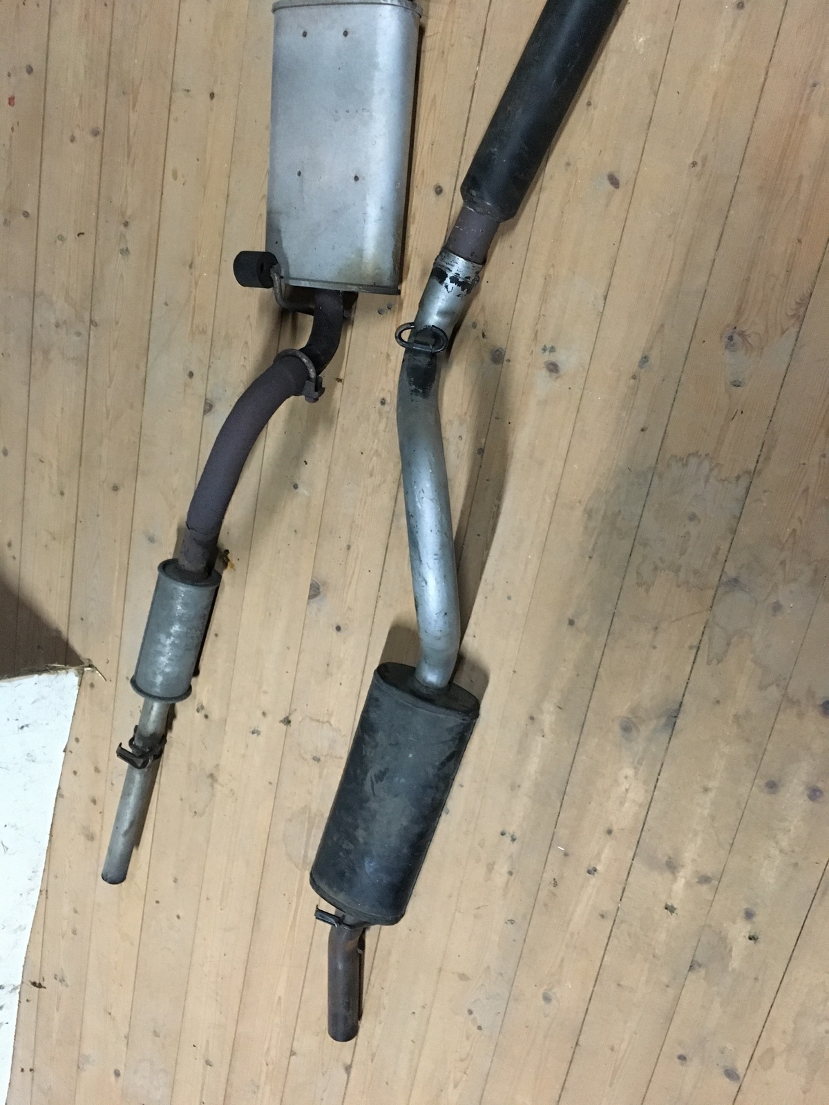 Der kleine Auspuff ist von meinem 1,3er, hatte ich nur zum Vergleich daneben liegen.