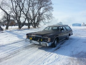 1970er Country Squire war mal ne Zeit dabei. Nettes Detail waren die Kurbeldreicksfenster.