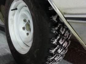 18 Jahre alte Stollenreifen mit Spikes - das beste für den Winter.