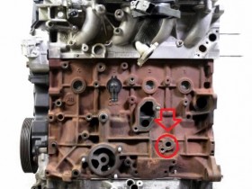 Da die Konstrukteure sich heutzutage ja erfolgreich alle mühe geben, den Motorraum so zu gestalten das man selbst nach Abbau der nicht betriebsnotwendigen Abdeckungen, immer noch nichts sehen oder fühlen kann, konnte ich die Herkunft des Öls nur etwas eingrenzen. ich habe mal ein Bild gesucht und die Stelle markiert wo die Brühe in etwa herkommt, die Frage lautet => ist in dem Loch überhaupt Öl und wenn ja wie heißt die Platte die da dran gespaxt ist?