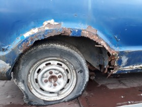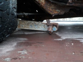 Rechte Achsaufnahme hat sich pulverisiert, und auch sonst gibt es nichts an diesem Wagen, was nicht völlig durch ist, bis auf Motorhaube und Kofferraumdeckel, und eventuell die Kotflügel.