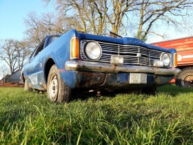 Irgendein verstrahlter Genosse hat den Wagen vor 18 Jahren mit Kurzzeitplatten aus Pforzheim dort hin gegondelt, seitdem stand er draußen auf der Wiese.