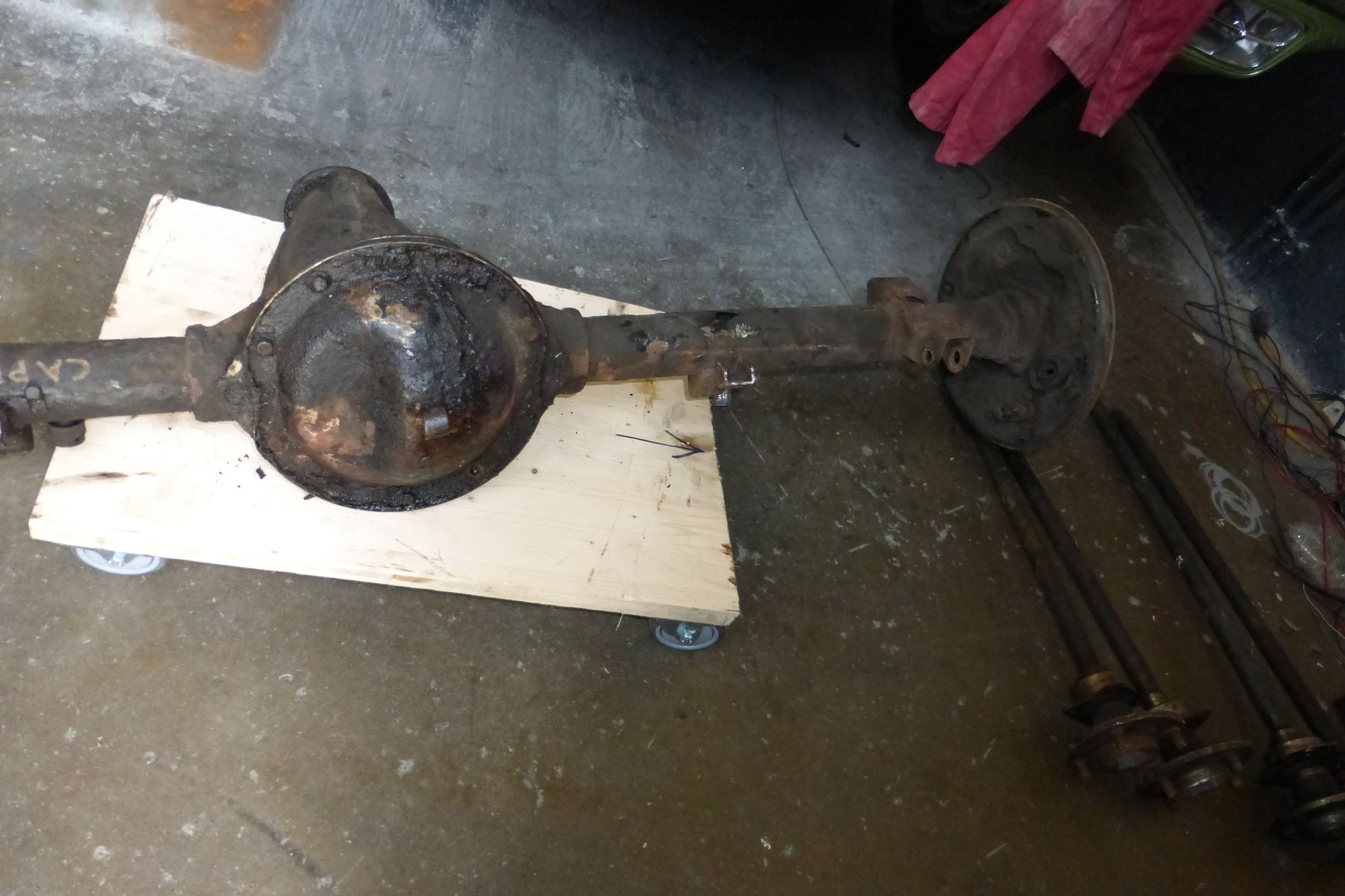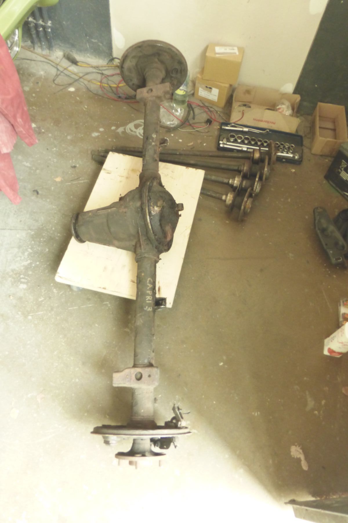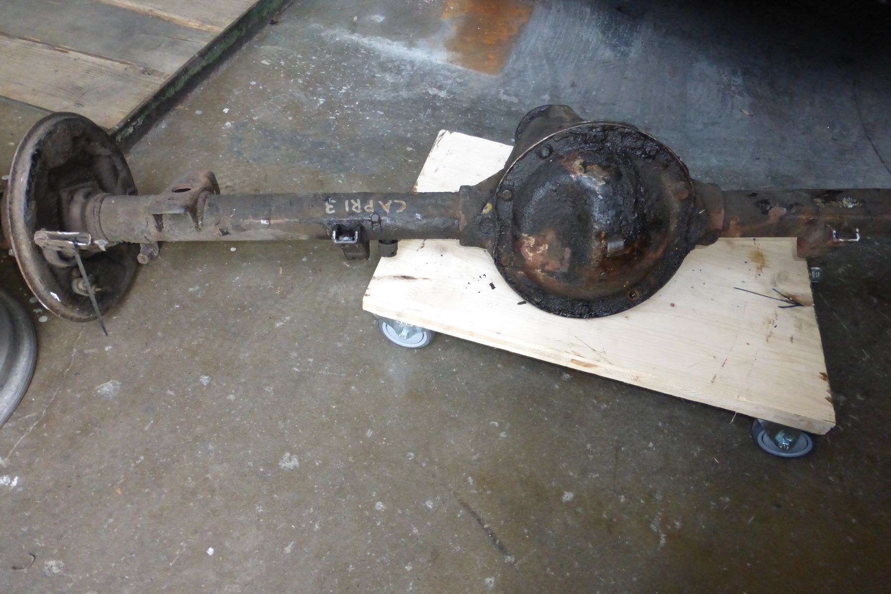 1x V6 Achse Capri III (steht drauf, weiß ich aber nicht sicher) komplett, ohne Bremsbacken und Trommeln 400€