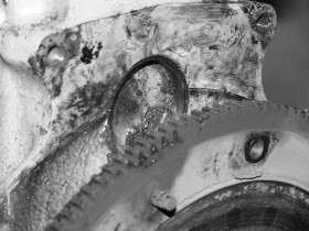 Achtung, der Stopfen hinter dem Schwungrad hat einen Anschlag im Block, also nicht versuchen den rein zu klopfen und zu drehen.