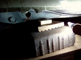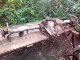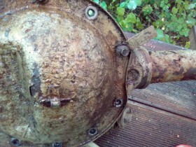 nun hatte ich heute Nacht die richtigen Einfälle, wie ich meine kleine Abhandlung einleite. Und schon sind sie wieder weg (genau wie meine Neffen. Die sind auch nie da, wenn man sie braucht und die können ohnehin nix. Das aber sehr gut). Egal, es geht los: aus meinem Kolonnenschieber mit 55 PS bei 1300 ccm Hubraum bau ich mir ne echte Spaßbremse. Vorerst auch nur mit 90 PS und 2 Litern. Aber Schnurz, die Restauration meines beim Autokauf letztes Jahr dazu bekommenen 2,3 V6 sollte mich über 5 Mill kosten, unter völligen Normalbedingungen sogar über 6. So hat der nette Christian aus ähhh, da hinter Hannover und Minden mir einen 2 Liter V6 verscherbelt. Vom Tristan schon vor paar Wochen ne 3,44 Achse ergattert und nun warte ich noch auf größere Bremstrommeln. Aber es wird schon losgelegt. Die Karre hab ich gestern aufgebockt. Die Achse ist gesandstrahlt und grundiert, die geteilte Kardanwelle ist grundiert und den Differentialdeckel, der beim Strahlen kleine Löcher offenbarte, ist zugeschweißt und auch grundiert. Schweißen ging völlig lässig mit 1,6 mm Elektrode bei 60 Ampere. Aus 3 mm Blech ne kleine Platte geschnitten und dann in die Knickform rein gedengelt, feddich. Also vorgebogen, eine Seite angebraten, nachgedengelt und und mit Zwinge reingezwungen und so.