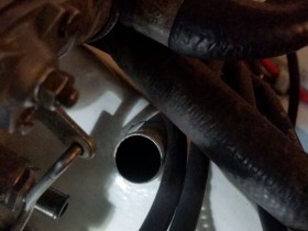 , die zu schwache Bat. Man muss eben immer ein Boot in Reserve haben, dann klappt das auch. Sogar das Bremslicht macht, was es soll. Da war das Drückeblech, wie auch immer geschehen, da war ich nich dran (aber ich denke mir schon, wer...), leicht verbogen. Und die Zange im Gepäck hats gerichtet. Sonst wäre natürlich Gaffa an der Reihe gewesen - mit einem Enkel dazwischen, versteht sich.