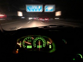 Der Cosworth hat die knapp 400 Kilometer von Göttingen nach Kiel sauber gemeistert. Der Rippenriemen war schon SEHR porös. Ich hatte einen neuen im Kofferraum, aber die Vorstellung den mitten auf der A7 bei Dunkelheit und Nieselregen zu wechseln schmeckte mir nicht, also ist er einfach heil geblieben.