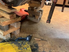 Radlager sind abgebaut, die neuen stehen bereit. Und wie es halt so ist wenn ein Auto eh schon halb zerlegt ist, man beginnt damit noch etwas mehr ab zu bauen. Also Tank raus und schauen obs drunter Rost hat. Erstaunlicherweise ist er sogar dort absolut Rostfrei.