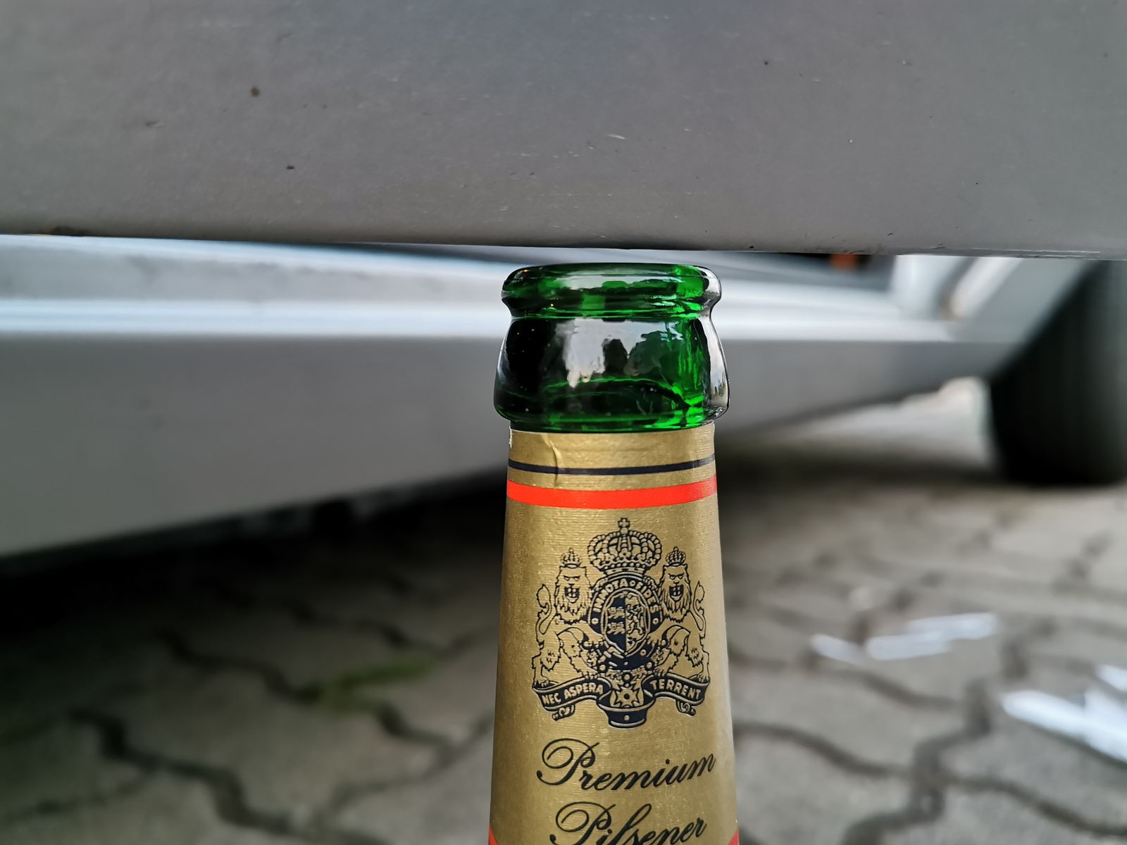 Unter der Tür passt die Flasche auch exzellent durch. Wäre damals fast in einer Katastrophe geendet, daher danach im Schock das Bild gemacht