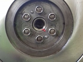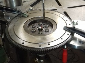 Bei Leistungsgesteigerten Motoren ist es oft ratsam das Schwungrad zusätzlich zu den Schrauben spielfrei zu verstiften. Gerade und besonders bei den OHC Motoren ist das ratsam, hier sind die Toleranzen etwas größer, als beim V6. Während beim Sechszylinder die Bohrungen im Schwungrad nur 10,2 mm groß sind, sind es beim 4-Zylinder OHC 10,5 mm Bohrungen. Normalerweise verhindert die Flächenpressung des auf der Kurbelwelle festgezogenes Schwungrades natürlich jegliche Bewegung, unter ungünstigen Bedingungen kann hier aber doch mal Bewegung entstehen, und dann sind die Schrauben schnell mal abgeschert. Hatte ich sogar schon mal bei einem reglementsbedingten 1,8 OHC Rennmotor, muß also nicht mal unbedingt ein Hochleistungsaggregat sein.