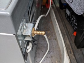Meine Absorberkühlbox hat dieses nette Pimmelchen hinten dran. Da ich womöglich auch mal den Gasbetrieb nutzen möchte, hatte ich bei einem Campingausstatter nachgefragt, was ich da für Anschlüsse bräuchte. Ich bekam nur "Das ist 30mbar. Da müssen se zu den Holländern rüber. Hammer nich." entgegen geknurrt.