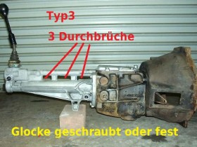 (3 Durchbrüche oben im Stteg der Alu-Getriebeverlängerung, Eingangswelle 7/8", 20 Zähne)) - Ford Type 2 = A-Getriebe