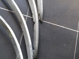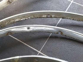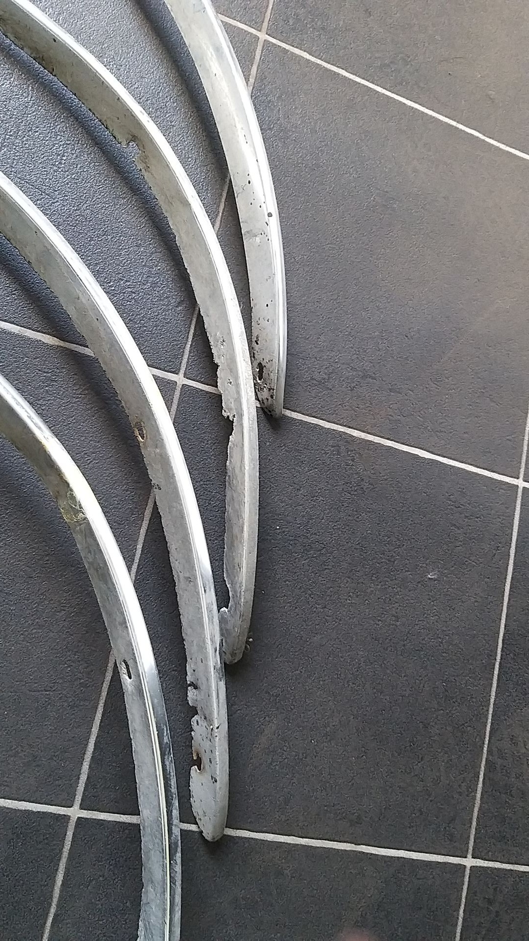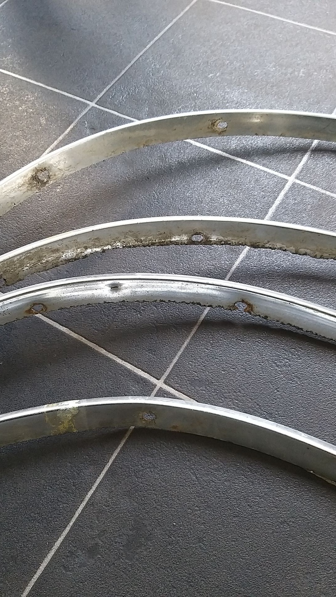 Satz Radlaufchrom TC1 - innen angefressen - Löcher aber noch da. 50 €