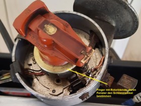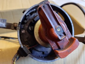 Wahrscheinlich ne nachgerüstete Hallgeber TSZ von Bosch. Also ein umgerüsteter Kontaktverteiler, die Lochblende für den Hallgeber hängt dabei am Verteilerläufer.