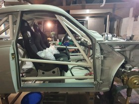 Als erstes kam ein alter Saab ...weiß nicht mehr ( siehe Bilder ) ... zum Vorschein. Komplett neu als Rennwagen aufgebaut. Macht er ( Rentner ) alles ! Alleine.